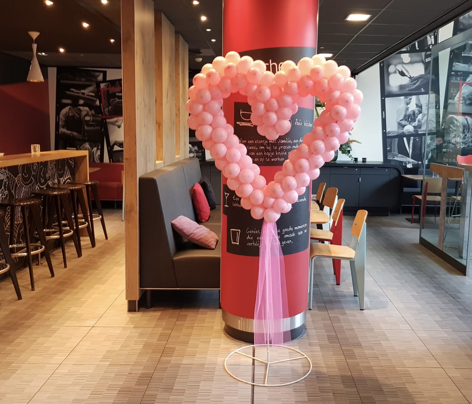 Prachtig ballonhart gemaakt van mini ballonnen op standaard.
