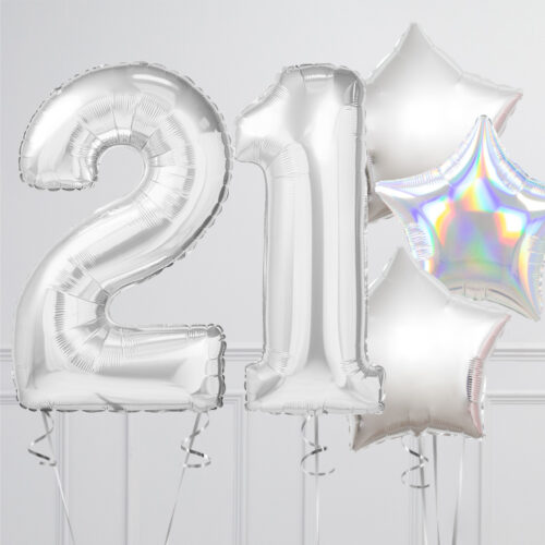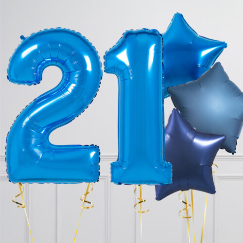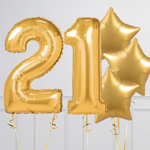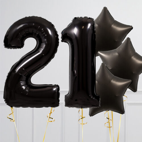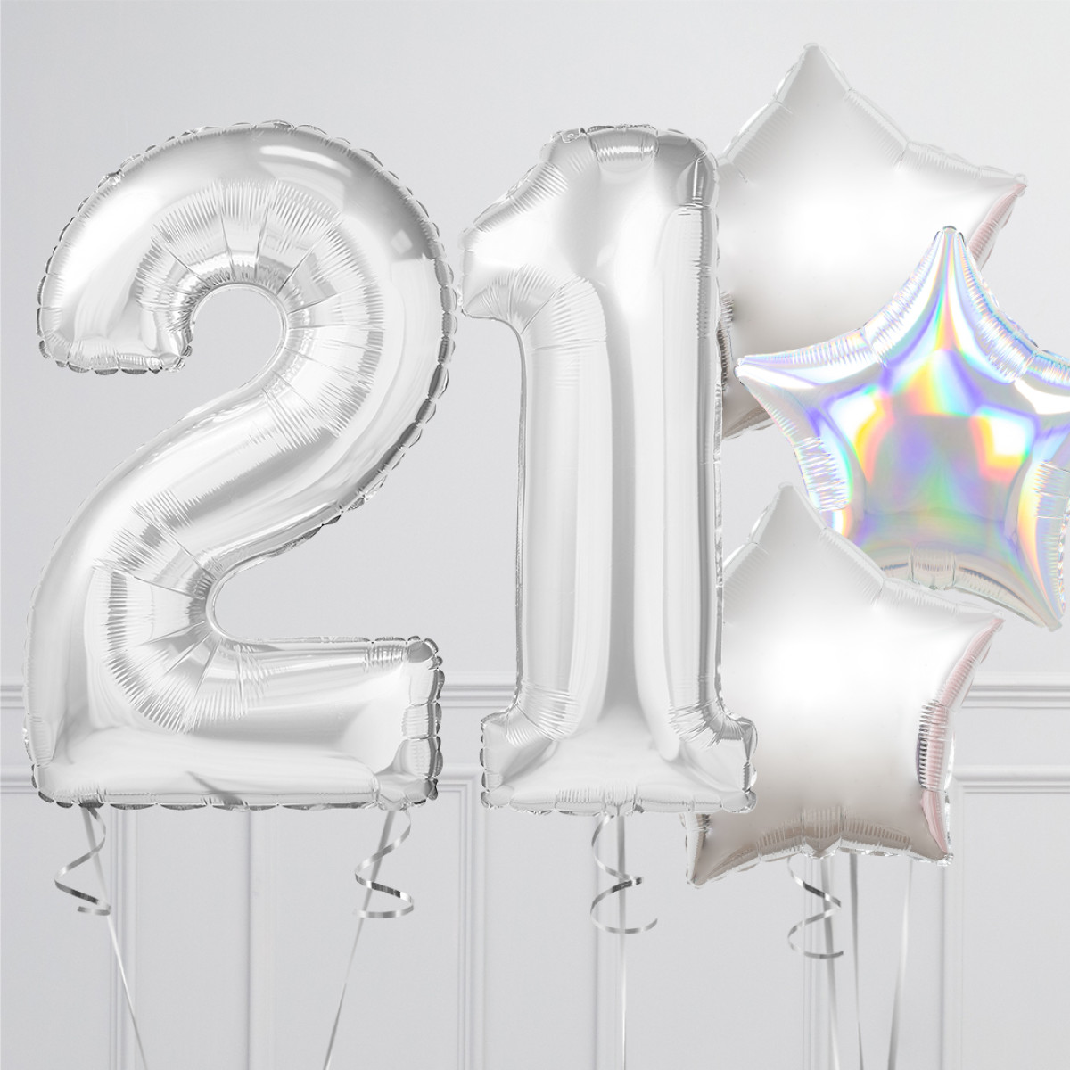 Prachtige ballonset van 2 xl cijferballonnen met een decoratieve set van 3 ster folie ballonnen.