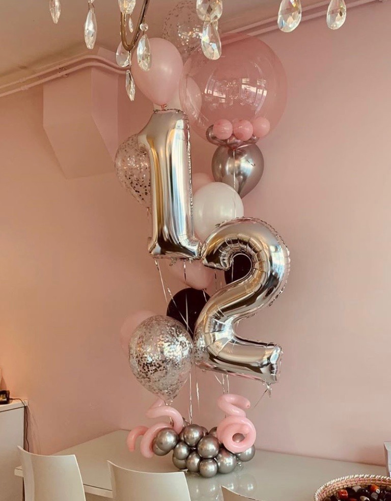 Dit prachtige show stuk wordt geleverd met 2x confettiballon, 1 bubblegum ballon (met kleine ballonnen), 2 xl 68cm cijfers (indien slechts 1 cijfer, passen wij dit aan met extra folie ballonnen), 8 helium ballonnen (met hi-float coating voor een langere zweefduur), en natuurlijk een luxe organic basis.