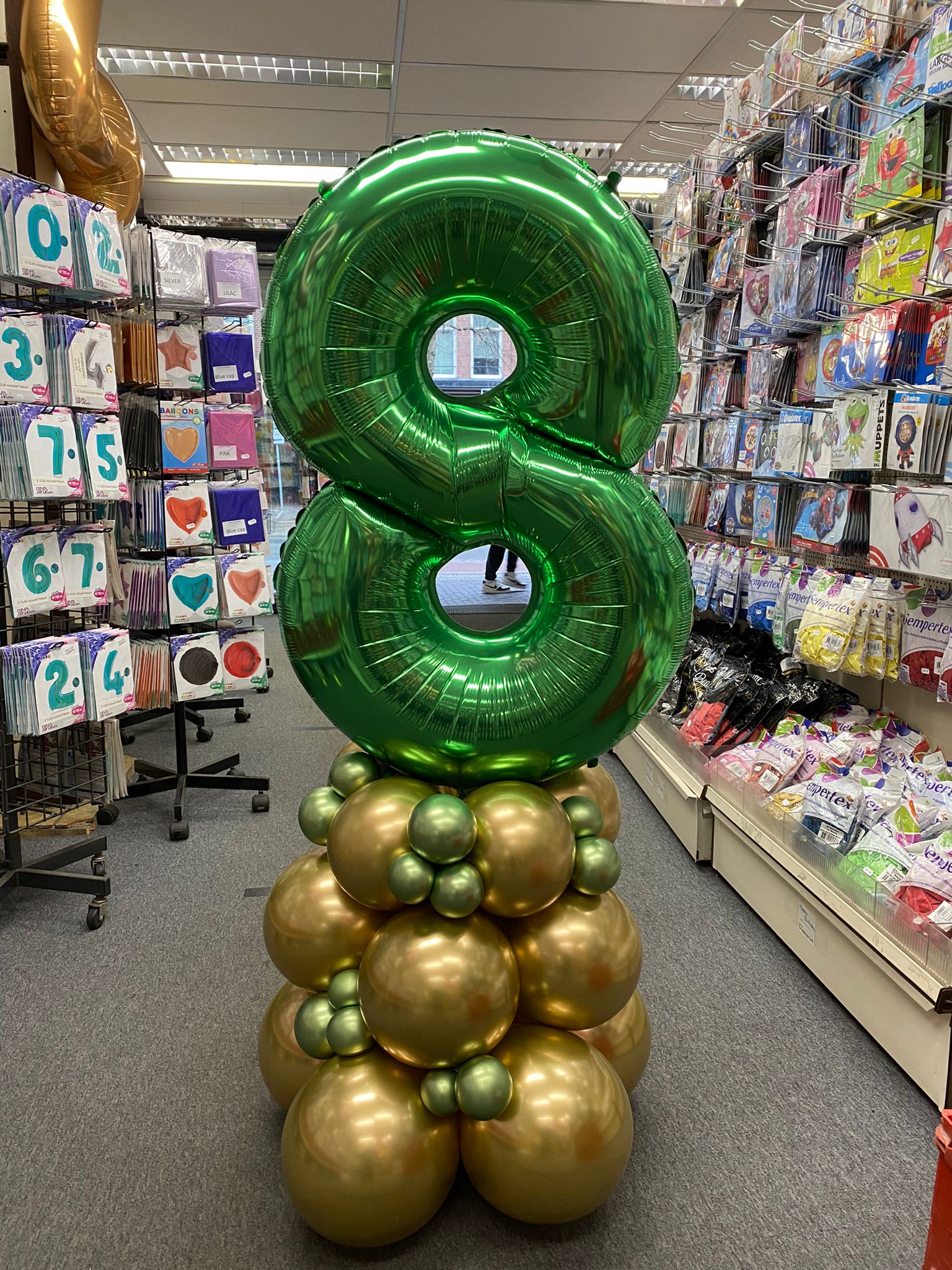 Super mooi showstuk, opgebouwd uit 1 of 2 cijfers van 1 meter op een toren van ballonnen.