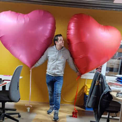 Het helium gevulde hart wordt geleverd met een gratis ballon gewicht. We kunnen eventueel een tekst op het hart zetten.